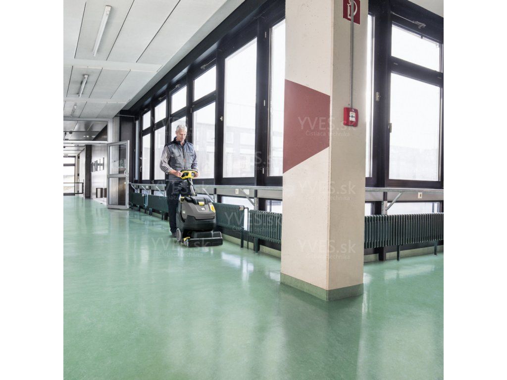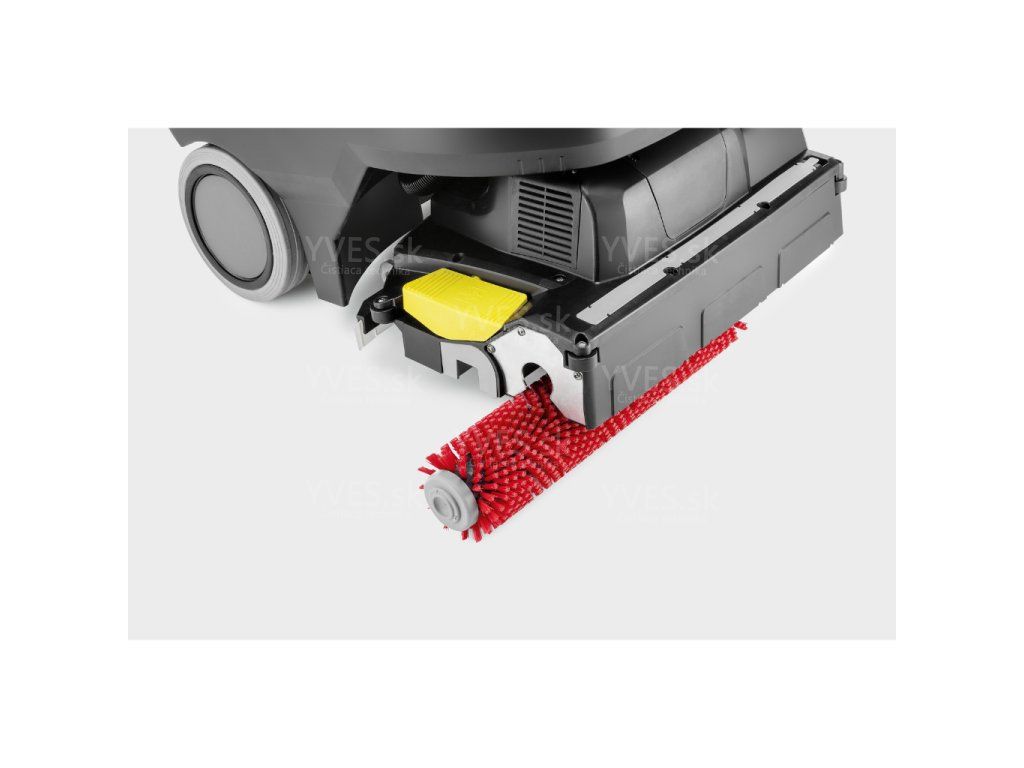 - Vysoký plošný výkon s valcovou kefou: Valcová technológia poskytuje vysoký prítlak, vďaka čomu stroj hĺbkovo čistí aj štruktúrované podlahy a škáry, ktoré bežné diskové čistiace stroje vynechávajú.