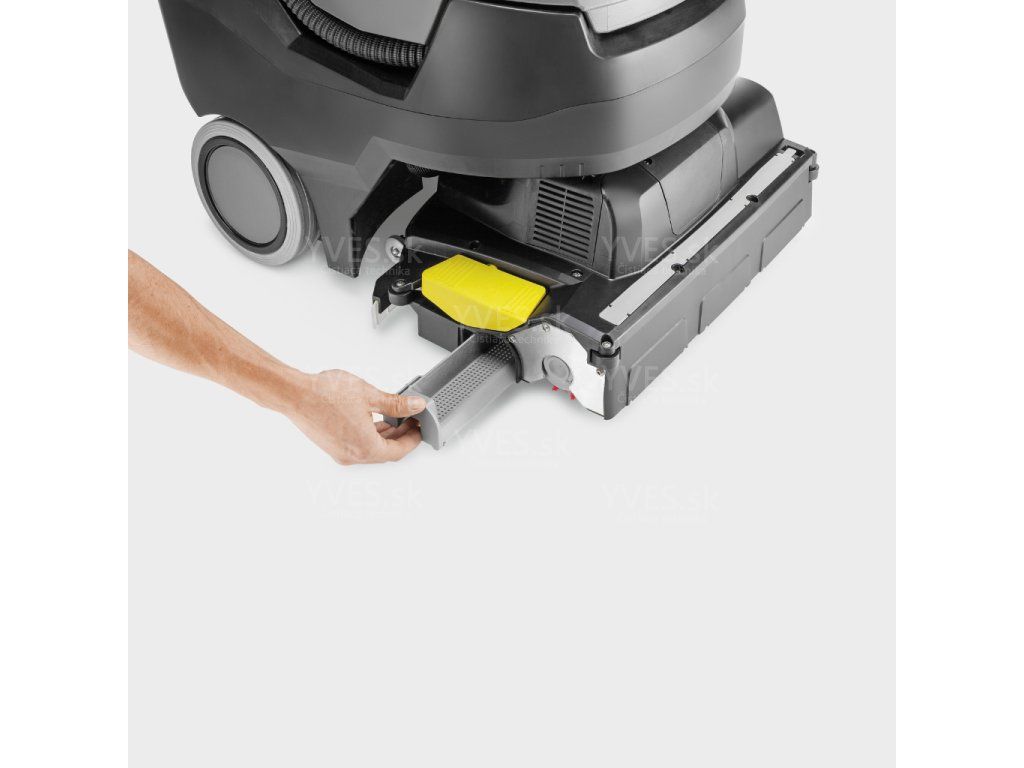 - Integrovaná funkcia zametania: V jednom pracovnom kroku stroj zametá, umýva a odsáva. Bez problémov si poradí s kamienkami, úlomkami dreva či inými drobnými nečistotami, čím chráni saciu lištu pred poškodením.